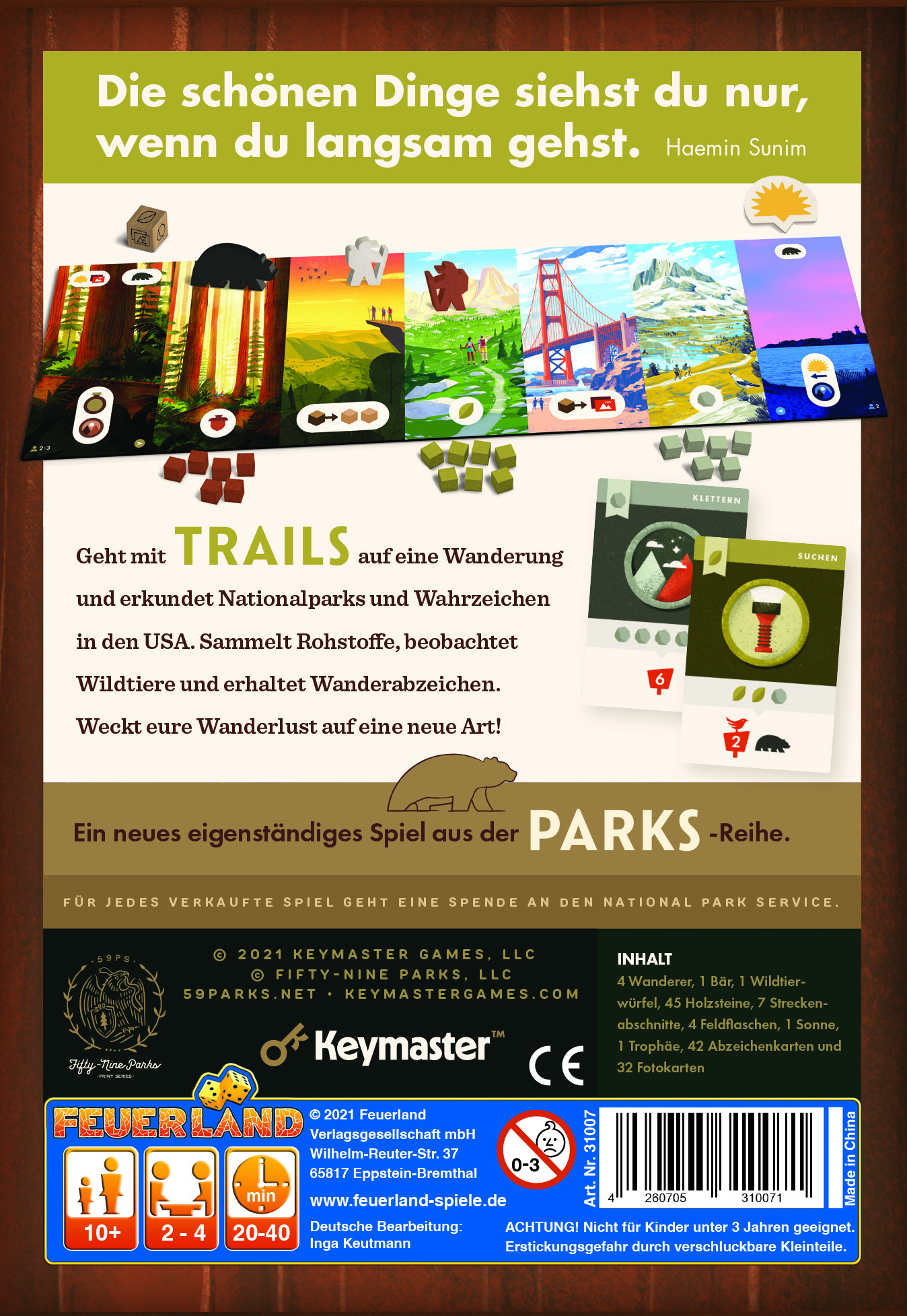 TRAILS greift das Thema Nationalparks der USA von seinem großen Schwesterspiel PARKS auf, ist dabei aber einfacher und schneller erklärt und gespielt.